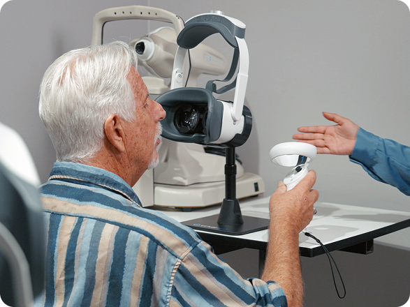 Carrot’s visual field analyzer is a wireless, VR-based diagnostic headset designed for functional vision and visual field testing. It replaces bulky tabletop perimeters with a lightweight, portable device that delivers accurate, comfortable testing in virtually any clinical setting.